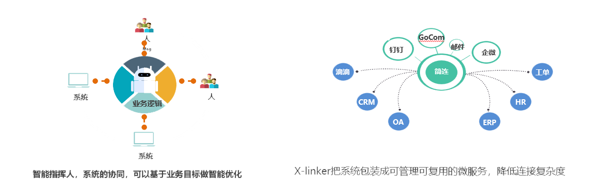 支撑大型组织有序运营的业务中台(“简连” ),解决大型组织人与人,人与系统、系统与系统有序可控连接,并提供面向内外部运营能力的业务中台,是政府组织和大型企业管控数字化时代的核心大脑。